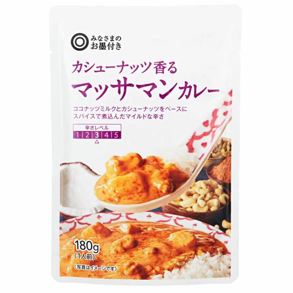 西友のプライベートブランドである「みなさまのお墨付き」から選ばれたレトルトカレー、正式名称は「カシューナッツ香るマッサマンカレー180g」です。